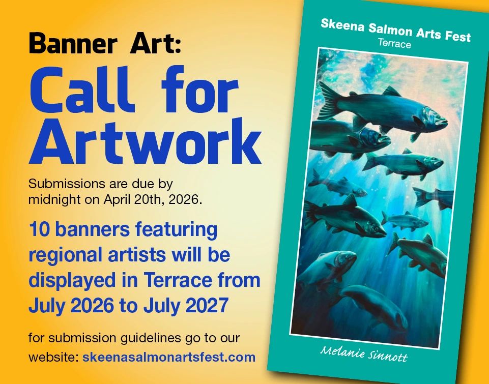 The Skeena Salmon Arts Festival welcomes image submissions from artists for banners to be displayed in the Terrace downtown area from July 2026 to July 2027.