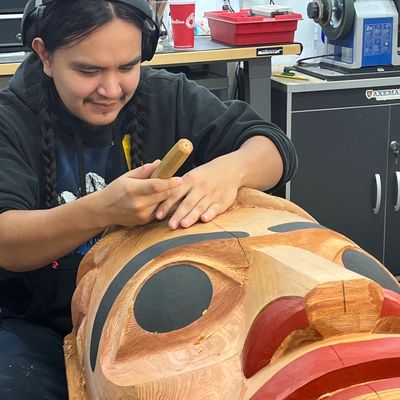 For Kobe Antoine, a graduate of the Freda Diesing School of Northwest Coast Art, working on major public art installations like this one is a way to put his mark on making the community a place that is more rich in culture. And he appreciates the knowledge that is passed down from Bevan in the process.
